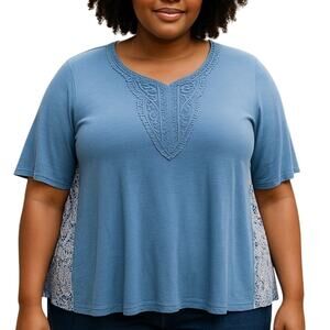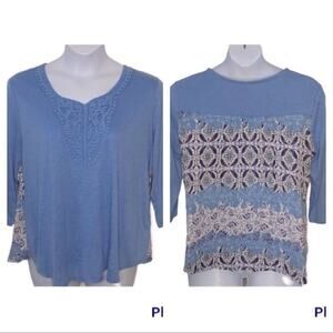 Cato Paisley Medallion Panel Two Tone Embroidered Blouse Statement Back Large