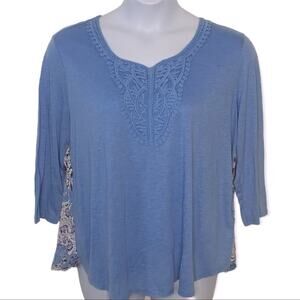Cato Paisley Floral Medallion Panel Back Embroidered Front 3/4 Length Sleeve Blouse