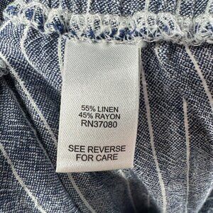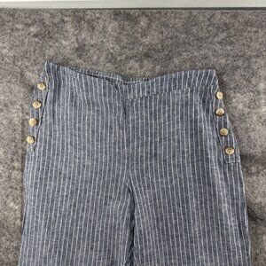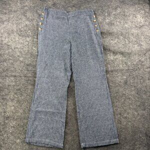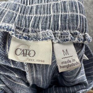 Cato Pants Womens M Blue Striped Linen Blend Mid Rise Nautical Beachy Wide Leg