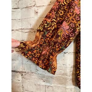 Cato Peasant Top Womens Large Rust Floral Bell Sleeve High Neck Smocked Boho