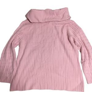 Pretty pink sweater with cowl neck. The knit is loose so you might need a cami underneath. Smoke and pet free home. (Bin 752)