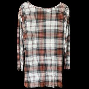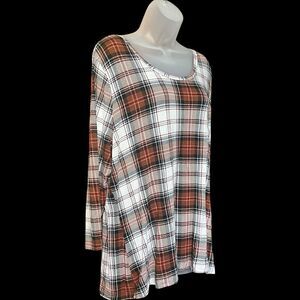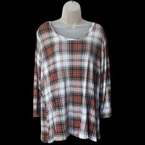 Women's Cato Plaid Scoopneck Tunic Top Sz XL 3/4 Sleeves