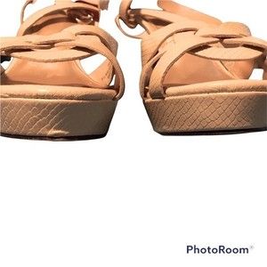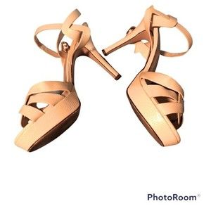 Cream colored platform heels. Textured design. Adjustable straps. Padded insole for comfort. Excellent used condition.