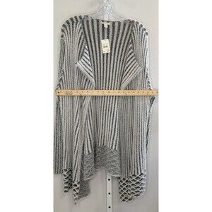 Cato Plus 22/24W Knit Open Front Cardigan Sweater Gray White Long Sleeve Boho