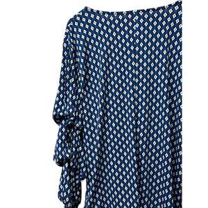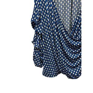 Cato Plus Size 22/24W V Neck Ruched Top Blue White Stretch Blouse Womens