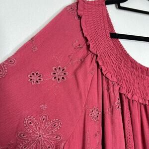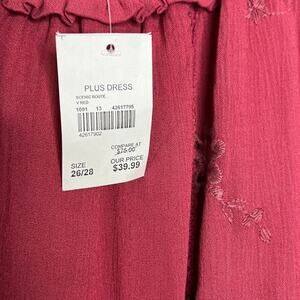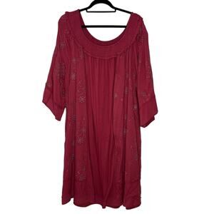 Cato Plus Size 26/28 Dress Red Embroidered Smocked Neck Boho Peasant NEW