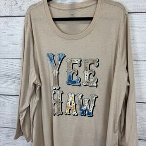 Cato Plus Size Tan "Yee-Haw" Studded Western Graphic Tee Size 26/28W