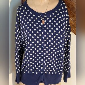 Cato Polka Dot Blue White Long Sleeve Sweater Size Large
