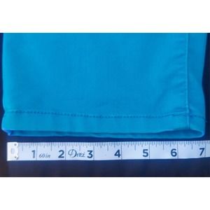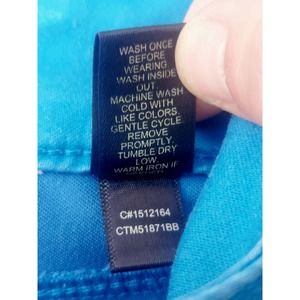 These jeans are a very pretty shade of blue. Size 8. The only blemish I can find is a very small (about the size of an ink-pen tip) dark dot approximately 5 inches below the back right pocket. Aside from that, these pants look brand new without the tags.