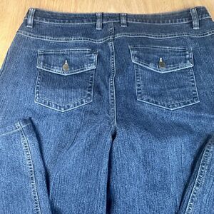 Cato Premium women’s jeans in size 18WP. Medium-wash stretch denim with bootcut legs and flap back pockets. Soft, comfortable blend with good stretch. Classic everyday denim that fits and flatters.