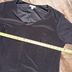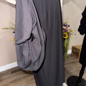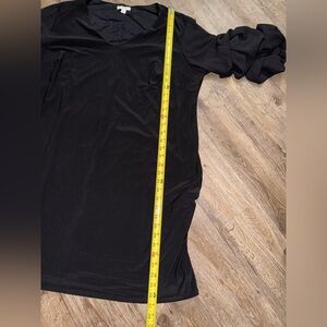 In excellent, like new condition. Lined. 3/4 tiered puff sleeves. V neck. Knee length. Has stretch.