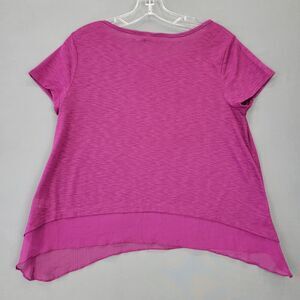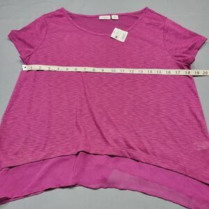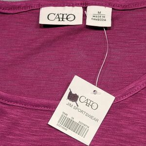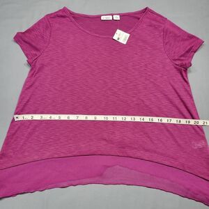 NEW Cato Women's Shirt Size M Purple Dark Lilac Preppy Classic Short Sleeve Scoop Neck Asymmetrical Trimmed Hemline Lightweight Polyester Top