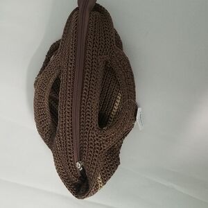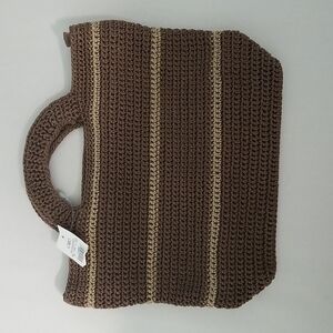 Cato Purse. This 2 handled crochet bag . Brown with a tan stripe. Zipper closure. NWT.
