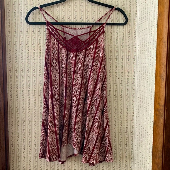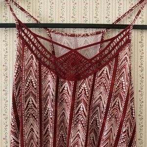 Maroon and white lightweight tank. Love the delicate details and flowing style.