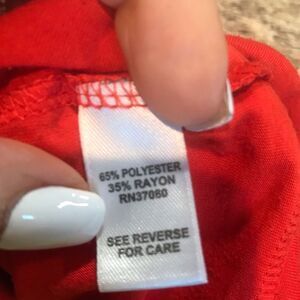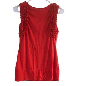 Cato red sleeveless blouse with ruffles, size small. Made of 65% polyester and 35% rayon. Excellent condition with no issues. B10