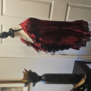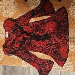 Chic long sleeve pleated skirt with floral pattern. Features a flattering ruffled neckline. Extremely and feminine. Perfect for elegant occasions. Pair it with a deep black pencil skirt or dress it t down with dark blue jeans and heels