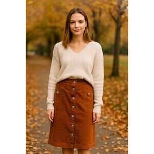 Cato Rust Brown Midi Length Stretchy Button Front Skirt Size 12