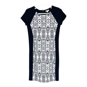Cato Sheath Dress Geometric Pattern Lined White Navy 14 Short Sleeve