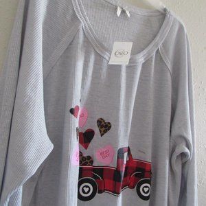 Cato shirt with heart designs on the front. Square-weave waffle fabric { Long John Look}