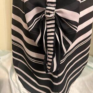 Cato. Size Medium. Black & white stripe pullover. V-neck. 3/4 sleeve. Semi Sheer. Shoulder to hem 26". 3/4 sleeve - see pic for slouch. Bust 20.5/41". (Armpit to armpit X2 - Taken with tailor's tape so could have a bit of play. Please add your preferred amount of ease.) Gathering at shoulder. Poly. Washable.