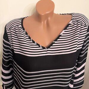 Cato. Size Medium. Black & white stripe pullover. V-neck. 3/4 sleeve. B100