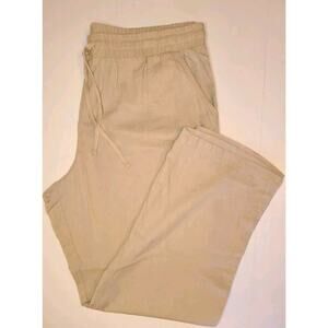 Cato Size XL Tan Linen Blend Wide Leg Pants Drawstring Pockets Pull On Elastic