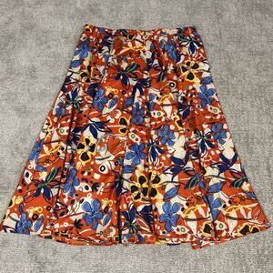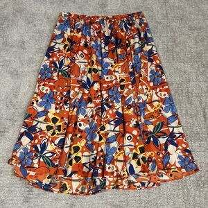 Cato Skirt Womens 26 28 Maxi Pull On Long Flowy Orange Floral Artsy Blue Flowers