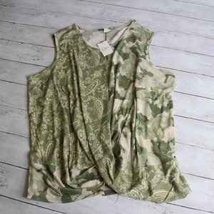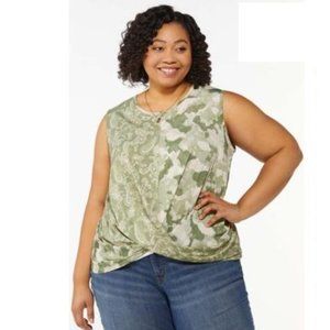 Cato Sleeveless Twist Top Plus Size 26W 28W Paisley Floral Camo Green 4X