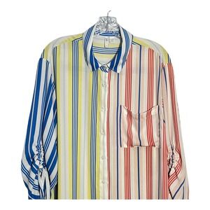 Cato Striped Shirt Dress Multicolor Button Down Tie Sleeve Plus Size