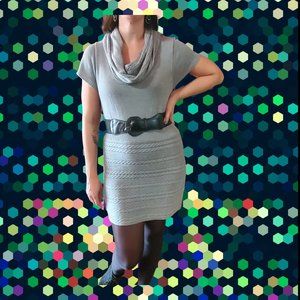 Cato Sweater Dress - Grey Cable Knit - Cowl Neck - Mini Skirt - Wide Belt. - Size Large
