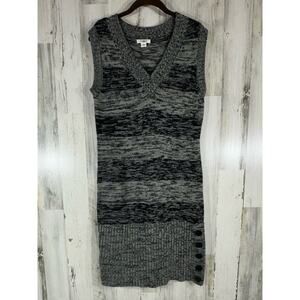 Cato Sweater Dress Size Small Black White Marled Stripe Sleeveless Button Accent