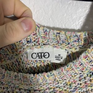 This Cato sweater is size medium and is in good condition. Its very stretchy and I think it could fit a large. Pit to pit 23-26 Length 27 front 31 back