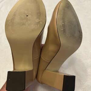 Elegant tan heels with a sleek strap. Perfect for any occasion.