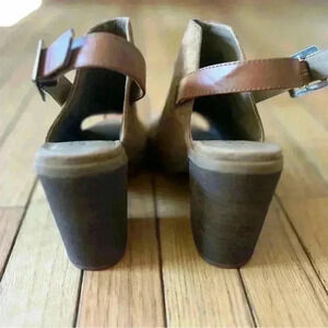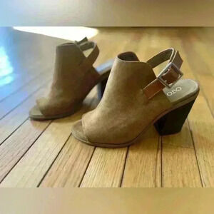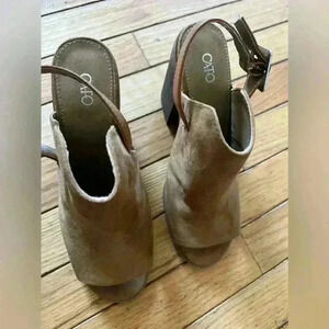 Cato Tan Velvet Textile Peep Toe Sling Back Chunky Heels Shoes Size 8 Bootie Y2K style western coquette