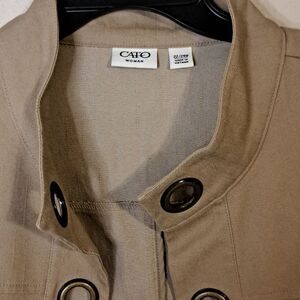 Elevate your style with this chic tan jacket from Cato. Perfect for any occasion, this jacket offers both comfort and elegance.