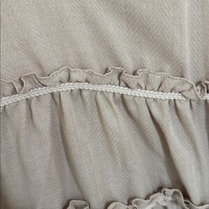 Chic taupe blouse with layered design. Features subtle ruffle accents. Ideal for versatile styling.