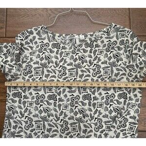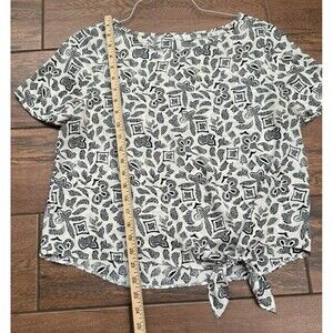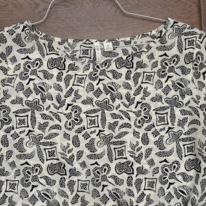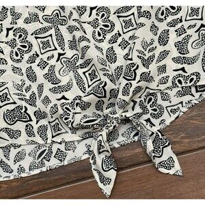 Cato Tie Front Black Ivory Tribal Short Sleeve Flowy Blouse Lightweight Sz M