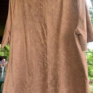 Cato Top in tan w/a suede-like feel. Round neckline. Short sleeves. Size L. $15 obo