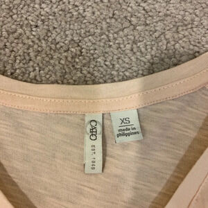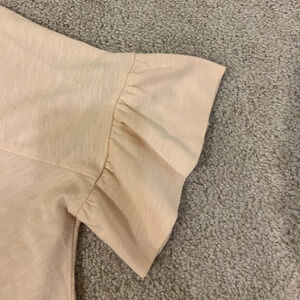 In great shape! Soft and comfy! Cute ruffle sleeve. More of a shell pink color. Perfect for casual wear but can be dressed up as well! Offers always welcome!
