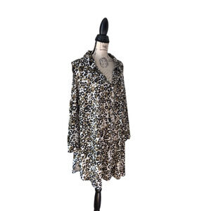Cato Tunic Blouse Button Front Animal Print Collared Coldshoulder LonglineTop Sz 26/28W