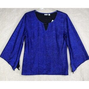 Cato Tunic Blouse Woman Plus X - Large Blue Shimmery Evening Party Wear Metallic
