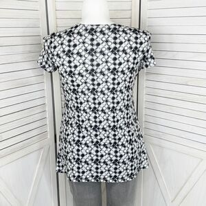 Cato Twist Front Geometric Print Tunic Top Grey White Large Cap Sleeve