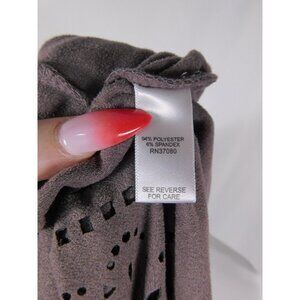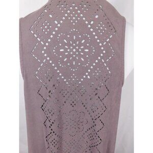Cato Vest Womens Medium Taupe Open Front Sleeveless Laser Cut Back Faux Suede