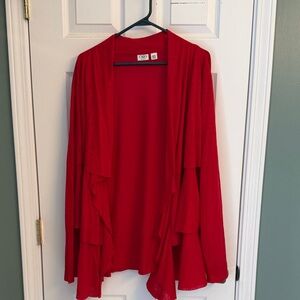 Cato Vibrant Red Layered Ruffle Open-Front Cardigan