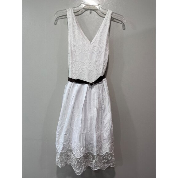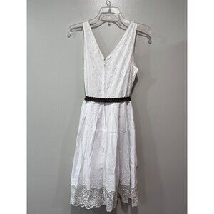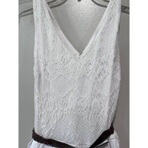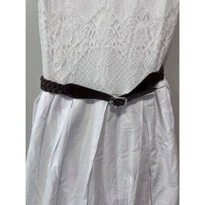 Cato White Sleeveless Lace Women’s Dress Braided Brown Belt Size 12