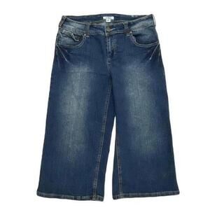 Cato Wide Leg Crop Back Flap Pockets Women's size 8 Dark Wash Blue Denim Jeans Great Condition!Waist: 30"Rise: 9"Inseam: 20"Leg Opening: 21"All measurements are approximate and are taken while laying flat.R1305