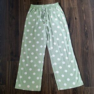 💙 Cato Wide Leg Linen Blend Polkadot Elastic Waist Pockets Pants Size M Beach S