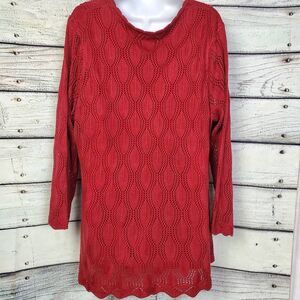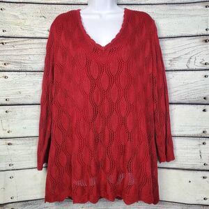 Cato Woman 22/24W Red Crochet Knit Tunic Sweater Plus Size Pullover Lined
