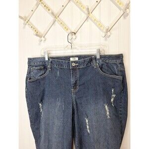 Cato Woman 22W Distressed Destroyed Jeans Pockets Logo Stretch Straight Leg Blue