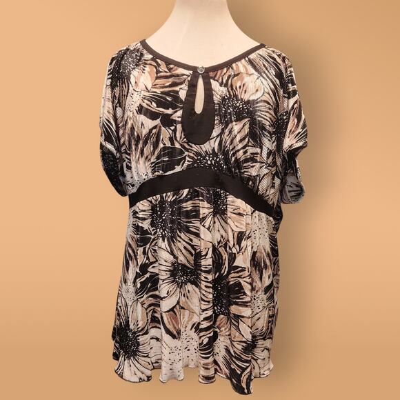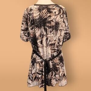 It features a stylish brown, black, and white floral print that's perfect for any occasion.